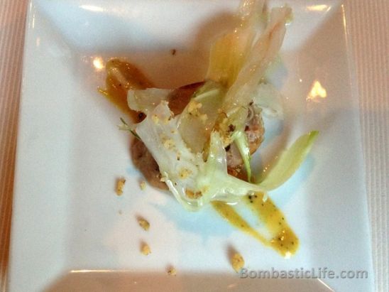 ![]() Amuse-bouche from the chef - Chicory with pork sausage at George Restaurant in Toronto at George Restaurant in Toronto |