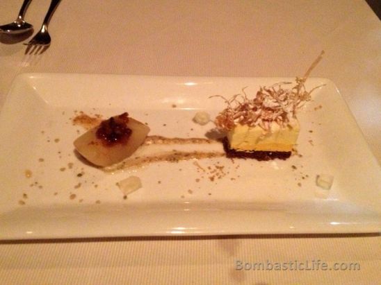 White Chocolate Pumpkin Mousse with brandied raisins and filo hay at George Restaurant in Toronto