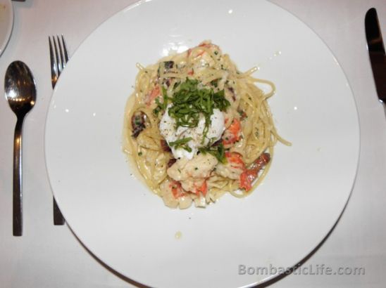 ![]() Linguine Carbonara served with lobster, bacon, and poached egg at One Restaurant at the Hazelton Hotel in Toronto |