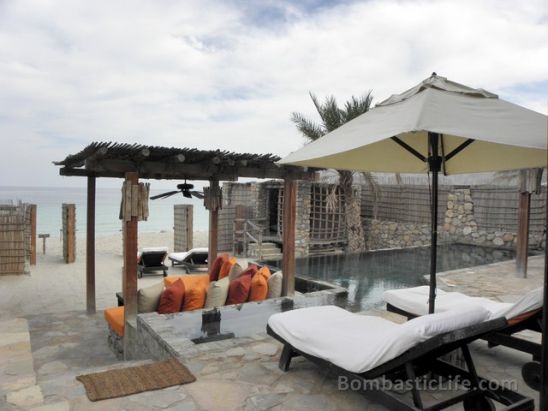 ![]() Deck, Day Bed, Lounge Chairs and Pool of our Beach Front Pool Villa at Six Senses Zighy Bay in Oman. |