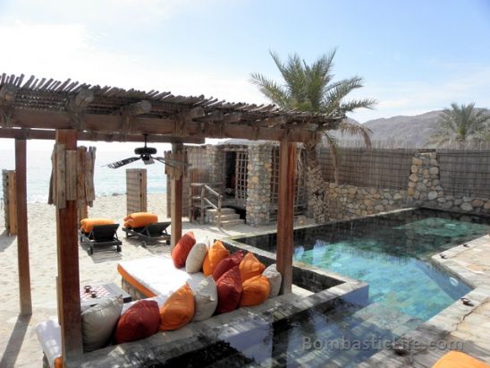 ![]() Day Bed and Pool of our Beach Front Pool Villa at Six Senses Zighy Bay in Oman. |
