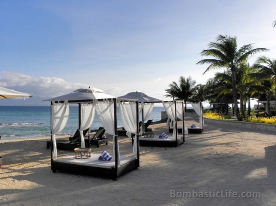 ![]() Daybeds along the beach at Misibis Bay Resort. |