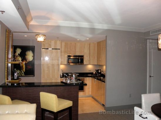 Kitchenette of our Wrap Around Suite at The Cosmo Hotel in Las Vegas.