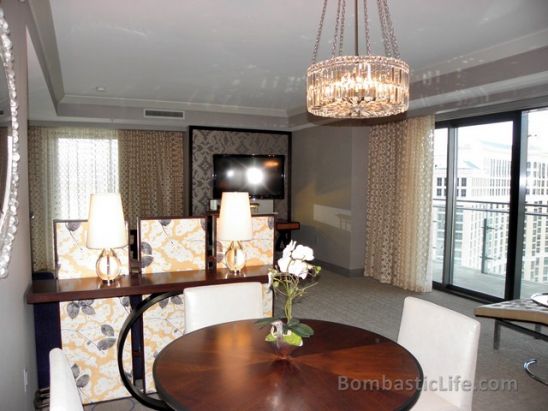 View of the Dining Room and Living Room from the Entrance Hallway of our Wrap Around Suite at The Cosmo Hotel in Las Vegas.