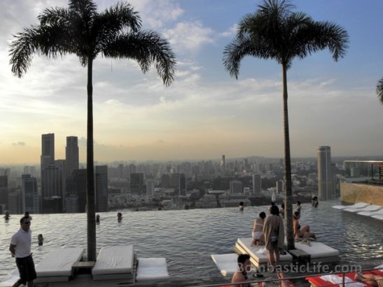 ![]() Pool located on the 57th floor (the roof) of the Marina Sands Bay Hotel in Singapore. |