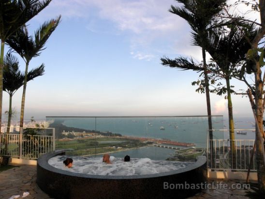 ![]() Jacuzzi located on the 57th floor (the roof) of the Marina Sands Bay Hotel in Singapore. |