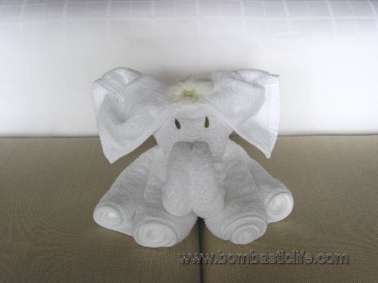 ![]() Elephant made from towels and left at the foot of the bed by housekeeping. It's the small touches that mean so much. |