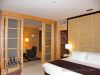 Regardless, the bedroom kept with the same comfortable feel and offered a large comfortable bed flanked by bed-side tables. It was also fitted with a spacious and large work-table. The colors used in the bedroom were soft and welcoming.