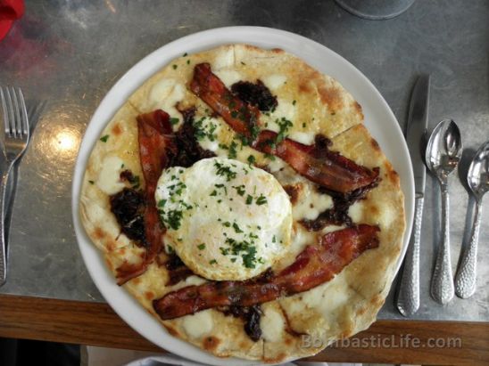 ![]() Breakfast Flatbread with two fried eggs, bacon, caramelized onions and mozzarella – filling and fulfilling! |